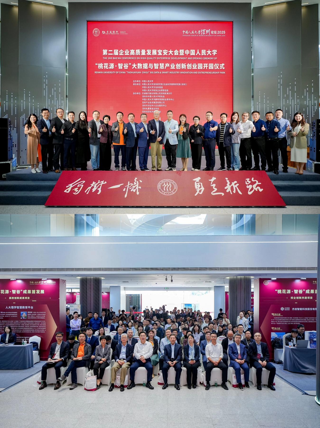 12月21日,深圳论坛2025精彩继续!在以“智创未来,融通生态——打造新质生产力发展新高地”为主题的全体大会上,第二届企业高质量发展宝安大会暨中国人民大学“桃花源·智谷”大数据与智慧产业创新创业园开园仪式在深圳宝安区桃花源科技创新生态园圆满落幕。